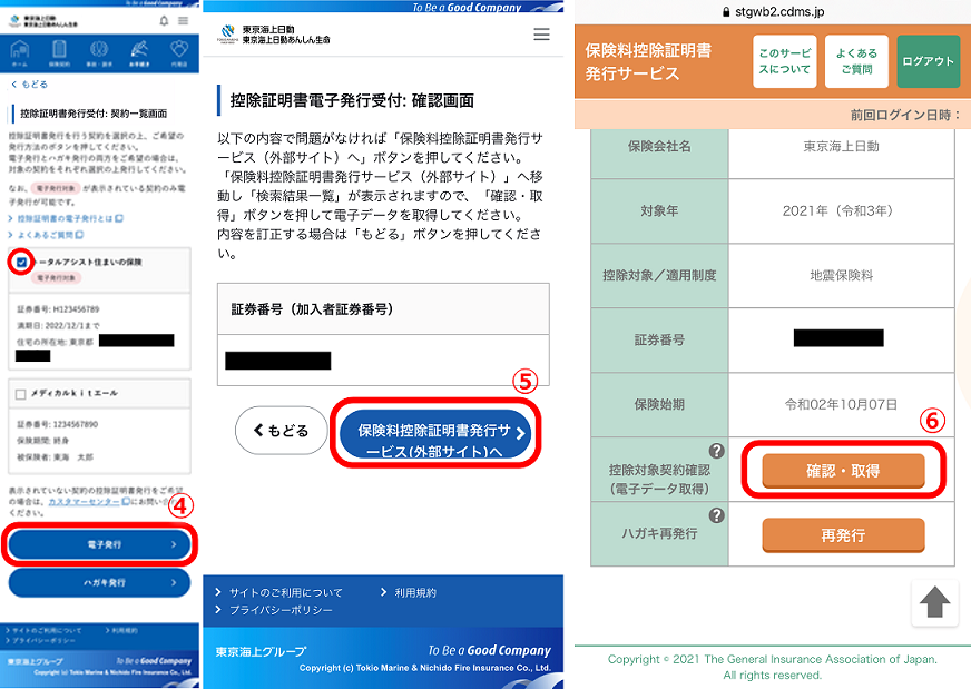 10月9日(木)~15(水)に、順次発送予定 ✅当年に契約、継続した保険のものは、「保険証券または継続証」に記載されています。 ✅昨年控除証明書を電子発行された場合は、控除証明書ハガキは発送されません 必要な控除証明書が見当たらない場合は、以下の方法で再発行をご依頼くださいませ。 |